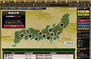 同じ大名家に所属しているプレイヤーは全員味方です。自分のペースで内政を行って国力を高め、合戦での勝利をめざしましょう。
